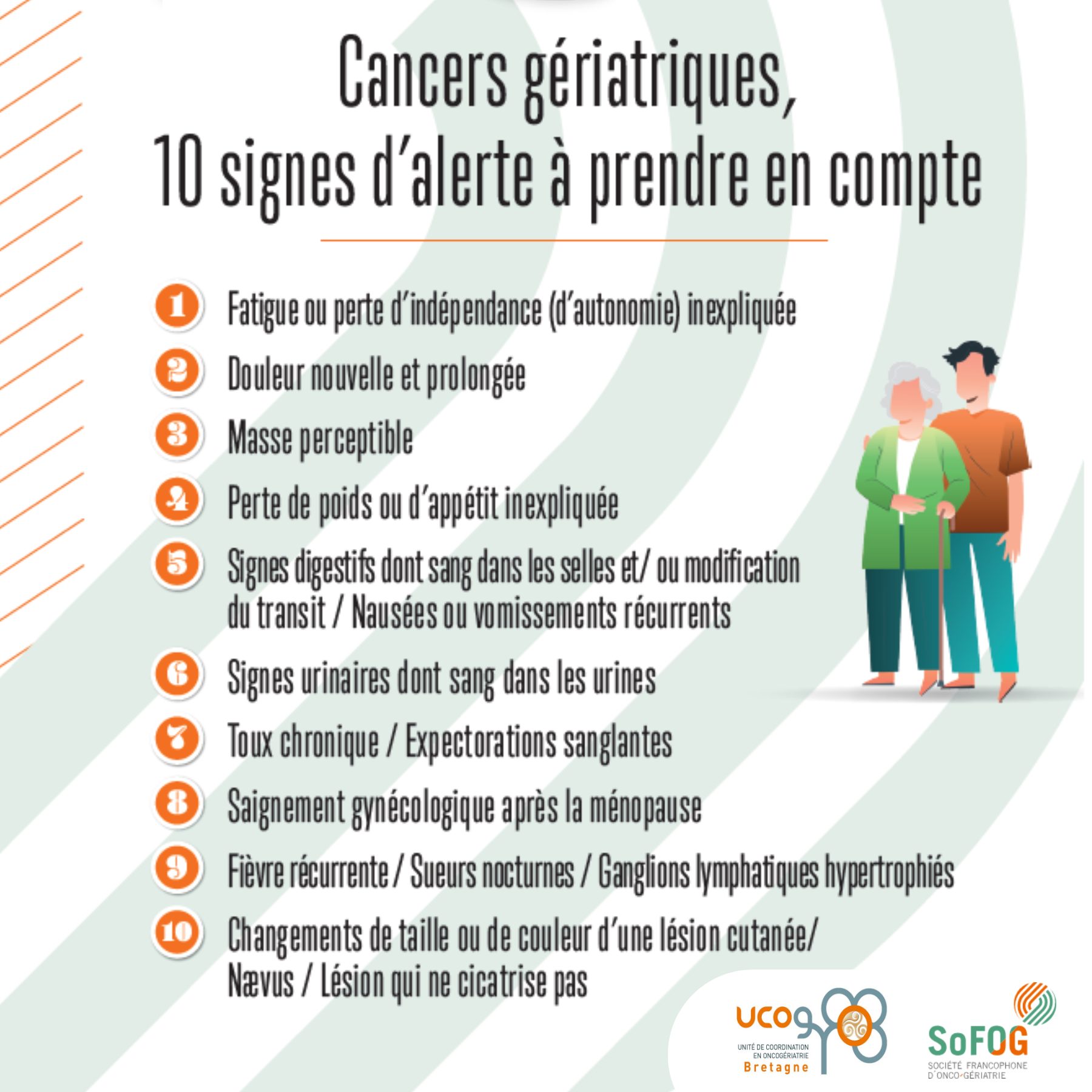 Comme le met en avant la SoFOG (Société Francophone d’Onco-Gériatrie), “Le cancer touche de manière croissante les personnes âgées : plus de 50 % des cancers colorectaux, un tiers des cancers du sein et plus de 70 % des cancers de la prostate concernent les plus de 70 ans. Pourtant, ces patients sont encore trop souvent absents des dispositifs de prévention et de dépistage, et leurs symptômes sont parfois diagnostiqués tardivement ou banalisés.”