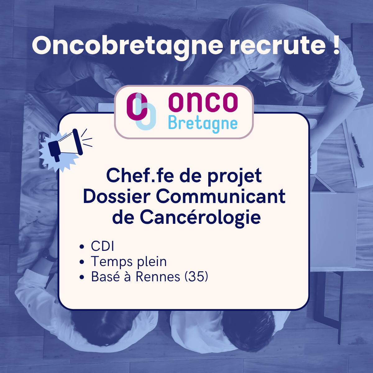 Envoyez votre candidature pour le poste de chef.fe de projet Dossier Communicant de Cancérologie en cliquant ici